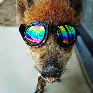 Hope is now 8 months old, walking around, learning and doing all the piggy things normal pigs do. She still has her odd ticks, and has to wear goggles while outside (but hey they're pretty cool.) The Arruda family is saving up to get some neuro scans done to understand more behind her blindness. Samantha said, “Hope, can actually make out shapes and shadows and might be regaining some of her vision as her health improves.” In just a few short months, this little piggy once sentenced to death, has made a remarkable recovery and truly become the come back pig!