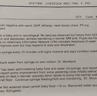 After her over night stay at the vet, Yolanda took her home, gave her shots and cared for her for the next 10 days, where she regained a little strength before calling upon fellow Adopt A Pig California member, Samantha Arruda. Yolanda thought Samantha would be perfect to take her in, as Samantha, admittedly said, "I'm always the one to take in the odd, the needy and desperate animals." and she then took over fostering little baby Hope. After a couple days of syringe feeding her, slowly increasing the consistency of her food, cleaning her up and starting her medications, Hope started to stand and try to walk about. She was coming back to life. Not out of the woods yet, poor Hope started passing worms that were bigger than her tiny little body.